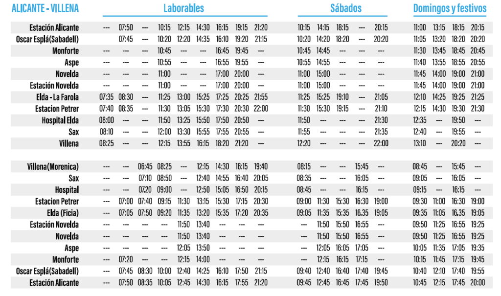 Alicante → Monforte del Cid → Elda → Petrer → Sax → Villena,